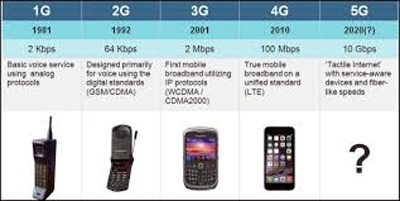 to the different stages of wireless technology called mobile